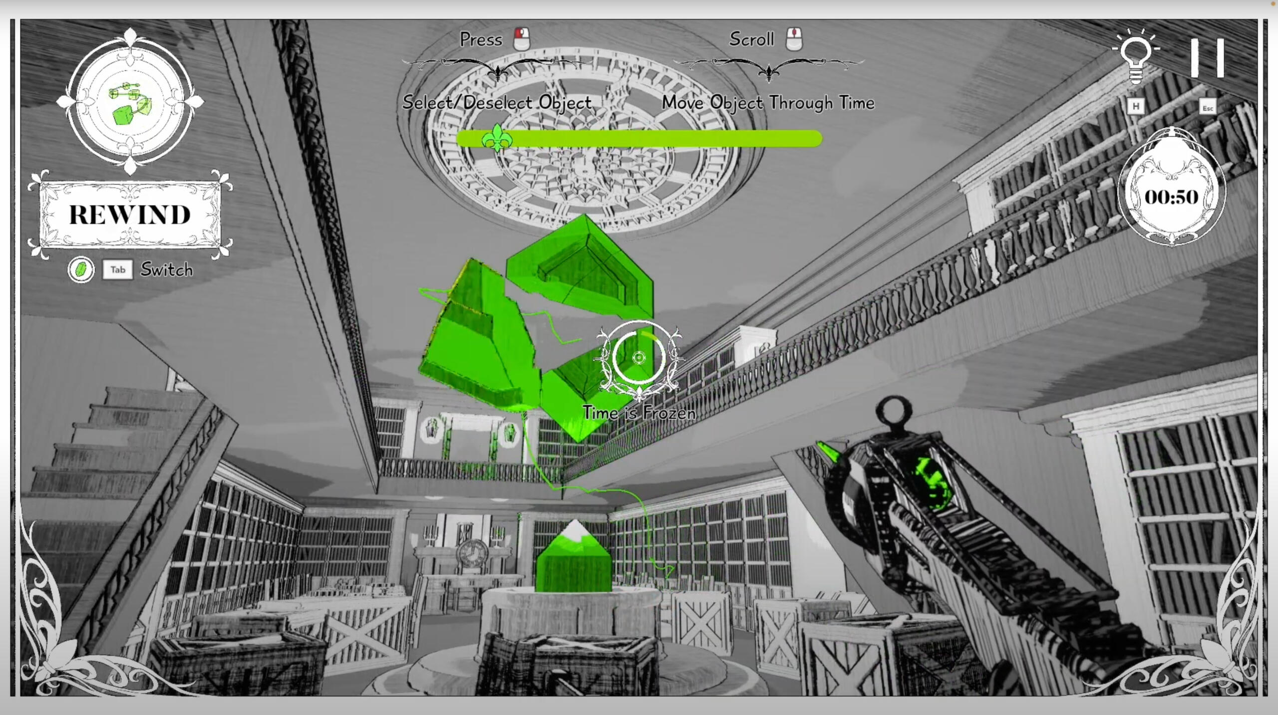 Planned and designed the mechanic’s user interface, ensuring key-binds were intuitive by making use of the mouse scroll wheel to move an object forwards/backwards through time.